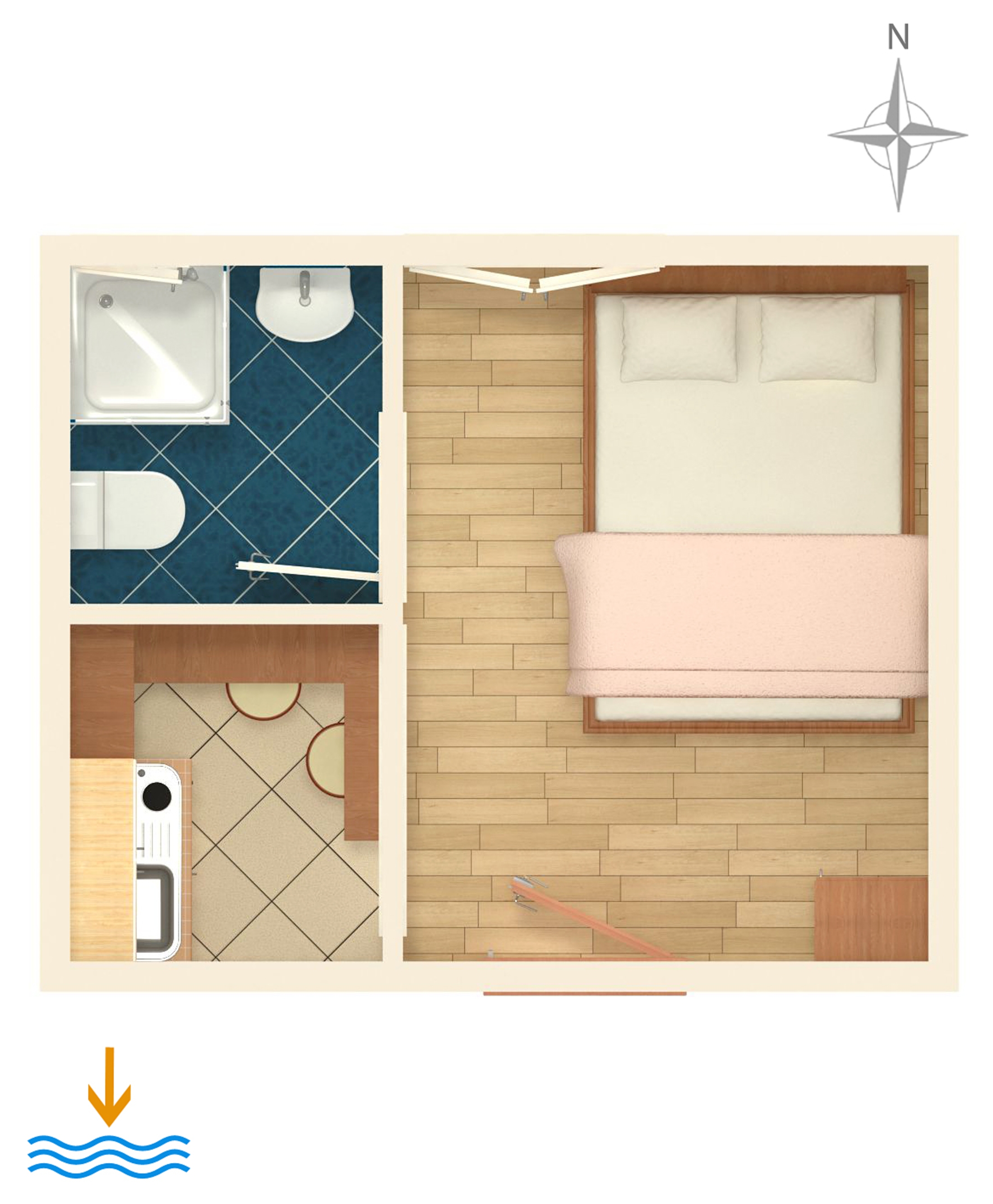 Studio flat can accommodate 2 guests. Beds are situated in 1 sleeping rooms, within 10m2. Food can be prepared using barbecue which is shared with other guests too. There is no balcony or terrace in the reserved accommodation unit. INCLUDED IN THE PRICE: tourist tax, final cleaning, parking, internet, iron, ironing board, hairdryer, portable barbecue. OBLIGATORY ADDITIONAL COSTS: short stay fee (surcharge depending on a number of booked nights: 30% - 1, 20% - 2, 10% - 3). The availability of additional services for your chosen dates of stay, as well as their prices (if none are listed) must be checked ahead of time. Any additional services not shown in the price calculation are payable directly to the property owner and only if used by the visitor.
